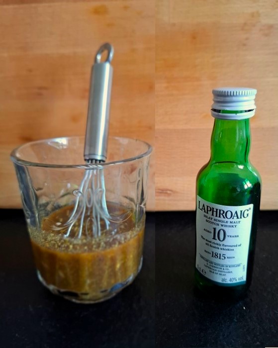 Zur beschreibung von Beam Suntory hiess es wie folgt: “Die Laphroaig Smoky Marinade bringt die intensiven, rauchigen Aromen des Whiskys perfekt zur Geltung und verleiht Fleisch eine besondere Tiefe. Mit einer Mischung aus Sojasauce, Honig und Kräutern wird das Fleisch nicht nur zart, sondern erhält auch eine einzigartige Geschmackskomposition, die den Herbst in jedem Bissen widerspiegelt. Ideal für Grillabende oder festliche Mahlzeiten.”